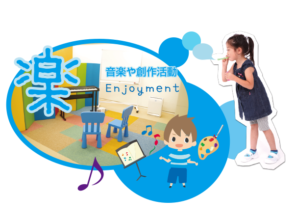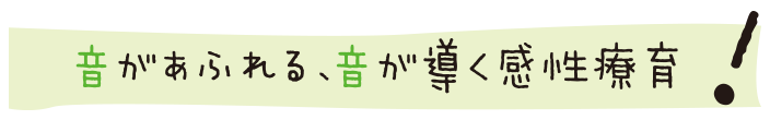 歌や楽器など様々な音との対話が子どもたちの情操に働きかけ、発語を促し、想像力や傾聴力、集中力を高めます。コミュニケーションを楽しむ気持ちも導きます。