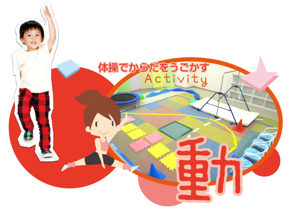 歌や音楽など情緒に響くプログラムを行う「楽」、思いっきりからだを動かして身体能力を養う「動」、じっくりしっかり個別で静かに学べる「静」。 お子さまの発達も個性もみんな同じではありません育ちを見極め得意を伸ばす。楽しいことがみつかります